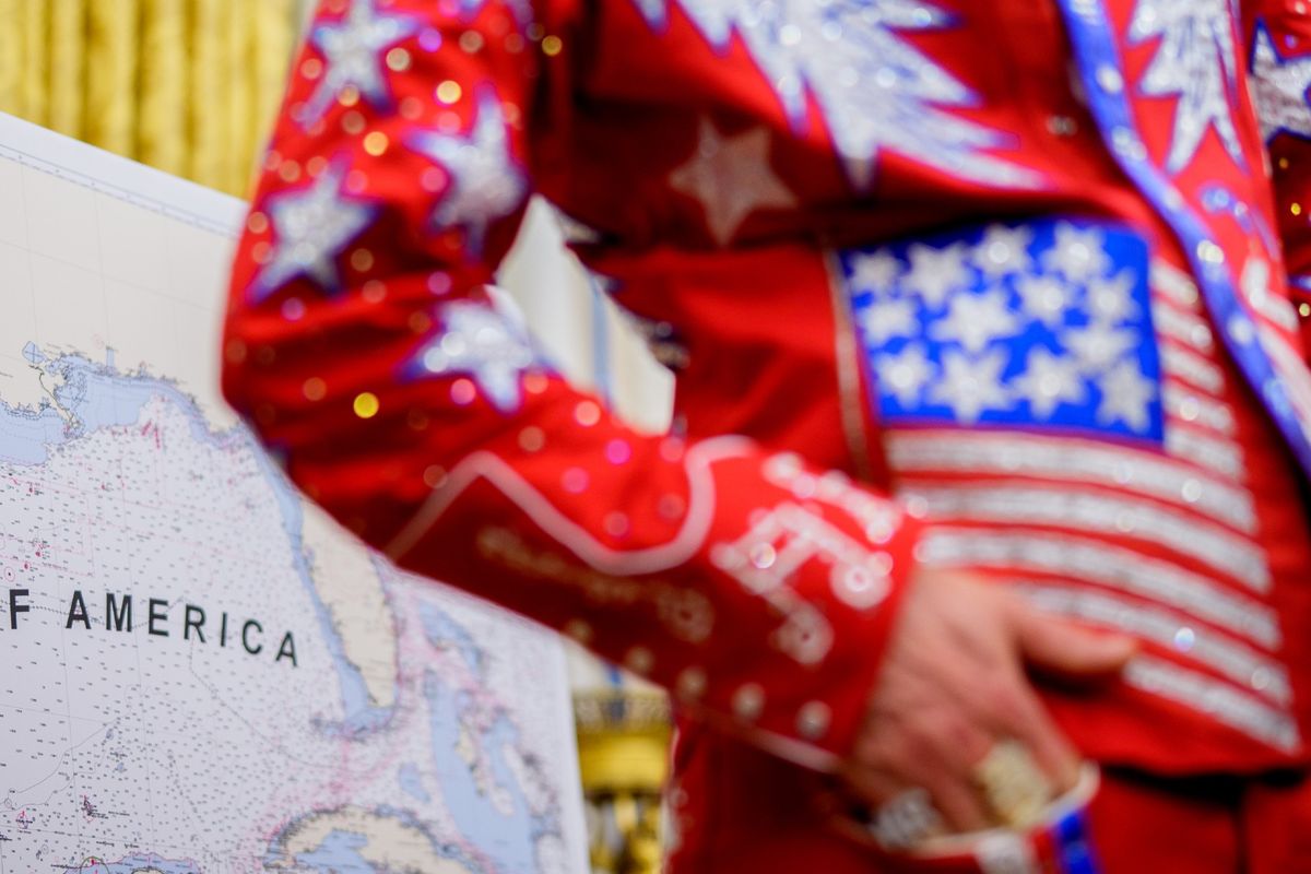 Meanwhile, Equally Serious MAGA Rep. Marjorie Tacky Greene, who's griped about other countries and even uppity Americans refusing to use the shiny, pointless, jingoistic new name, wrote a shiny, pointless, jingoistic new bill to show them all. The Gulf of America Act swaps out names and "directs federal agencies to update their documents and maps to incorporate the new name." Wednesday, the House Natural Resources Committee held a hearing for majority House Republicans to ratify it. But Dems, irked by the calamitous state of the union and the resulting, inane things they've had to spend their time on, weren't that into it. Instead, they forced votes on multiple amendments by launching a barrage of new names: Gulf of Ignorance, Gulf of Helene, Gulf of American Should Rejoin The Paris Accord. Rep. Jared Huffman went further - "Let's skate to where the puck is going" - by seeking to rename the whole damn planet "Donald Trump." His move failed; MTG's bill passed, 24-17.